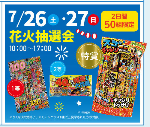 ※抽選会はモデルハウス1棟以上ご見学の小学生以下のお子様限定で、1組様1回限り、先着100組様。