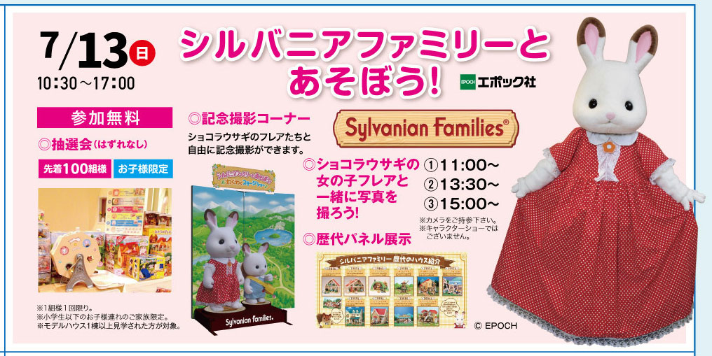 シルバニアファミリーのグッズが当たる抽選会や、記念撮影コーナー、歴代パネル展示など、内容盛りだくさん!