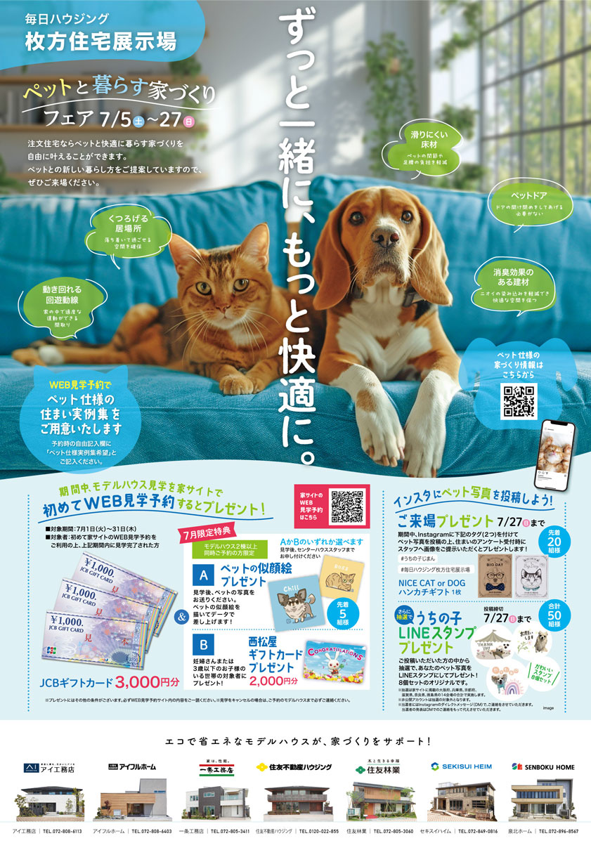 7/5(土) 〜27(日)「ペットと暮らす家づくりフェア」開催!来場プレゼントもあり