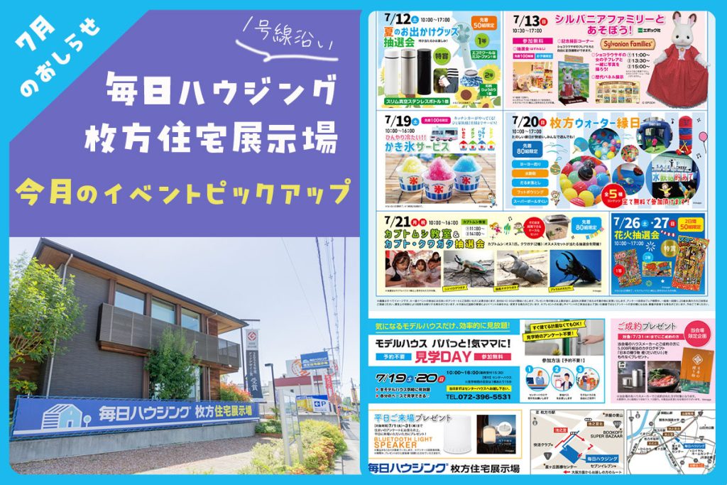 国道1号線沿いの「毎日ハウジング枚方展示場」で行われるイベントをお知らせする、【今月の毎日ハウジングイベント】のコーナー!