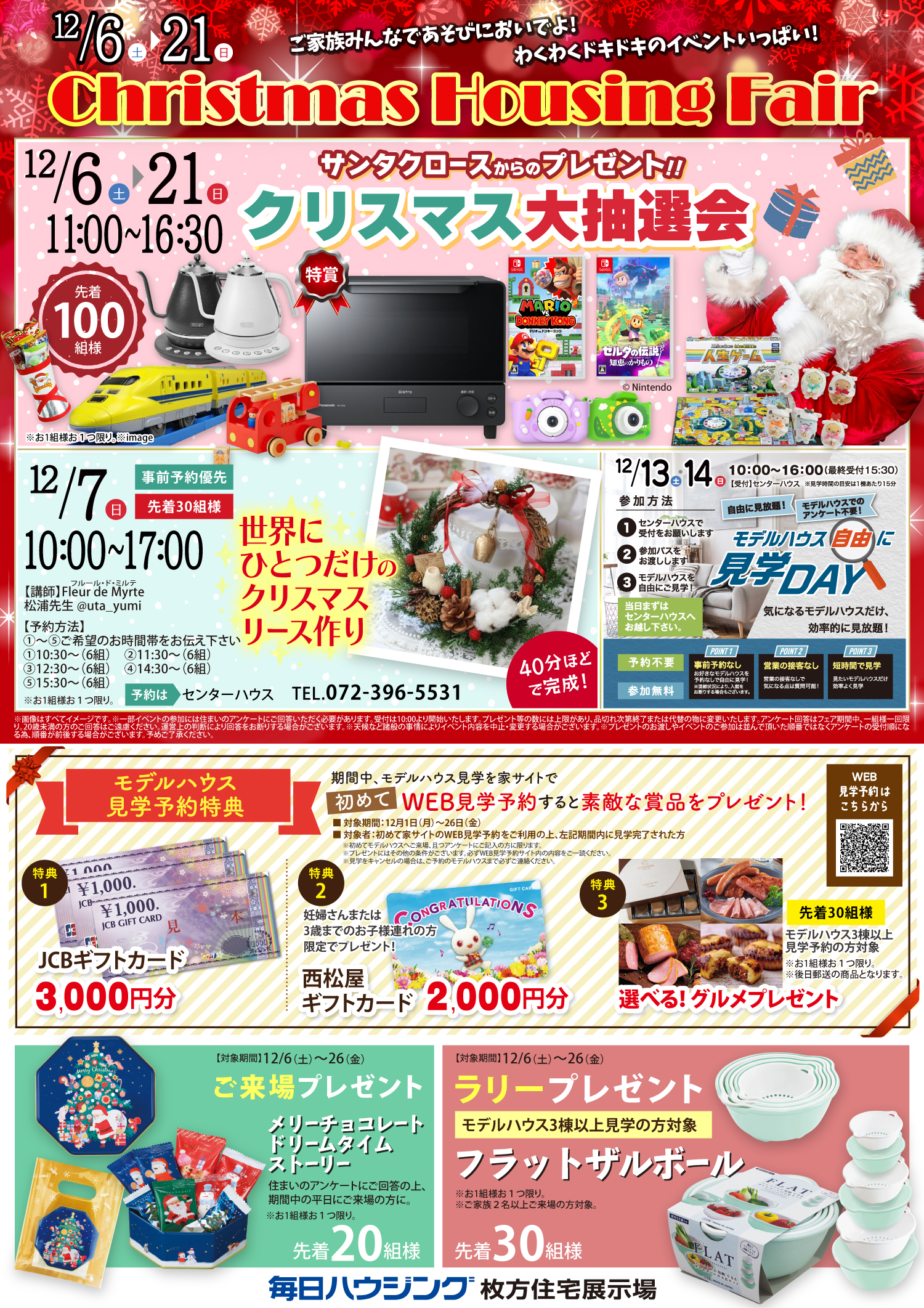 6日(土)からは豪華景品が当たるクリスマス大抽選会が!7日(日)にはクリスマスリース作りも🎄