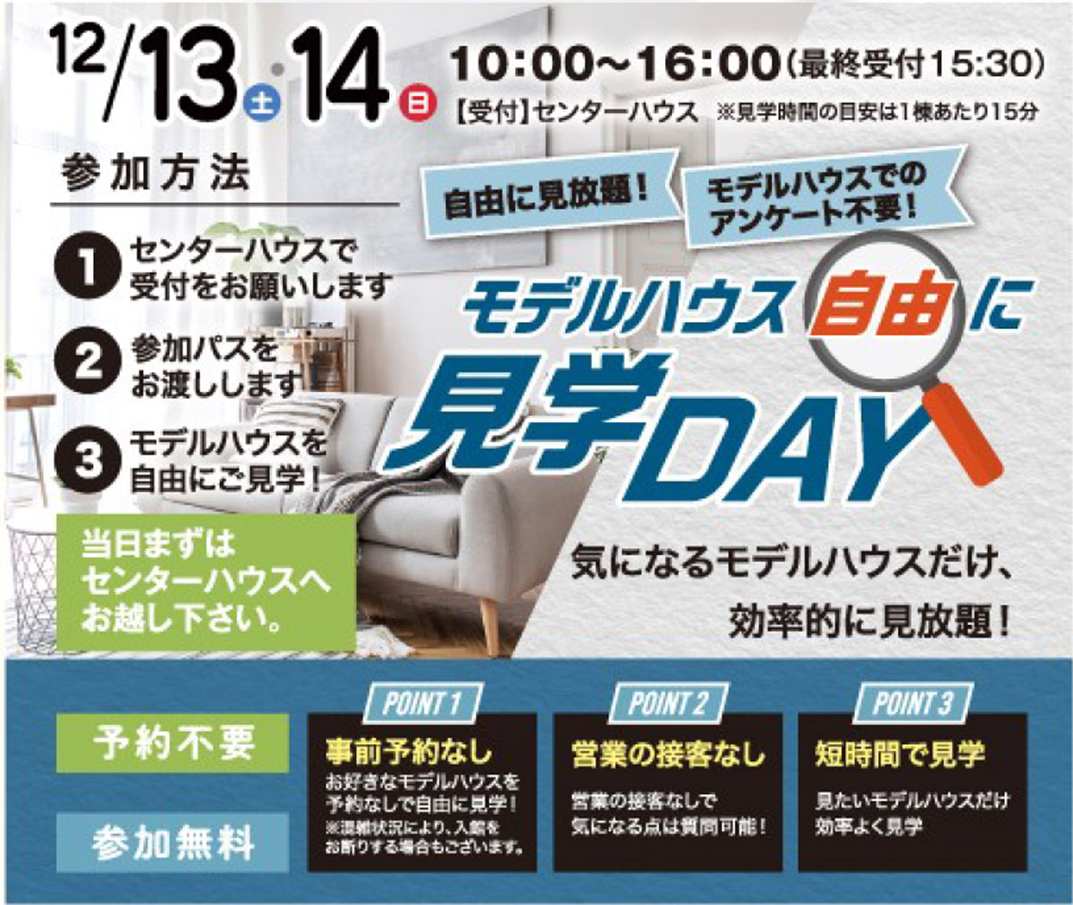 12/13(土)・14(日)は「モデルハウス 自由に見学DAY」を開催!