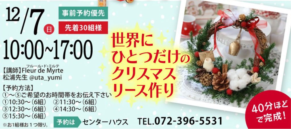 12/7(日)世界にひとつだけのクリスマスリース作り