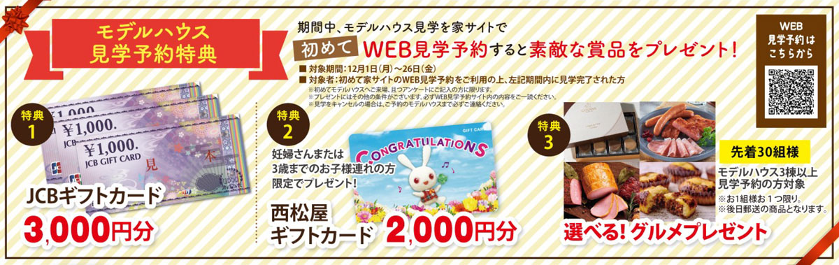 12/26(金)までに家サイトで初めてWEB見学予約するとプレゼントが!