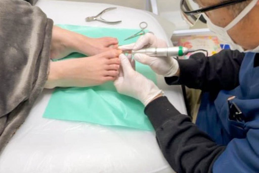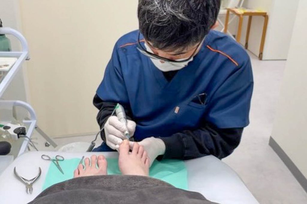 ここでは巻き爪の補正・ケアを専門に行っているので、1回の施術で大体1時間くらいかけて丁寧にケアさせていただいています。