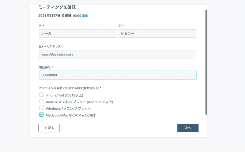 まずはこちらの予約ページから必要事項を打ち込んだりチェックを入れたりします。