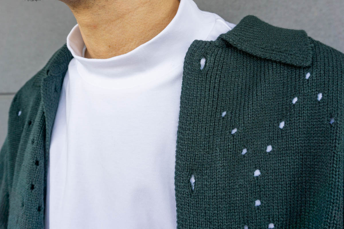 シュンのカーディガンは透かしのデザインが入ってて、羽織るだけでおしゃれ!
