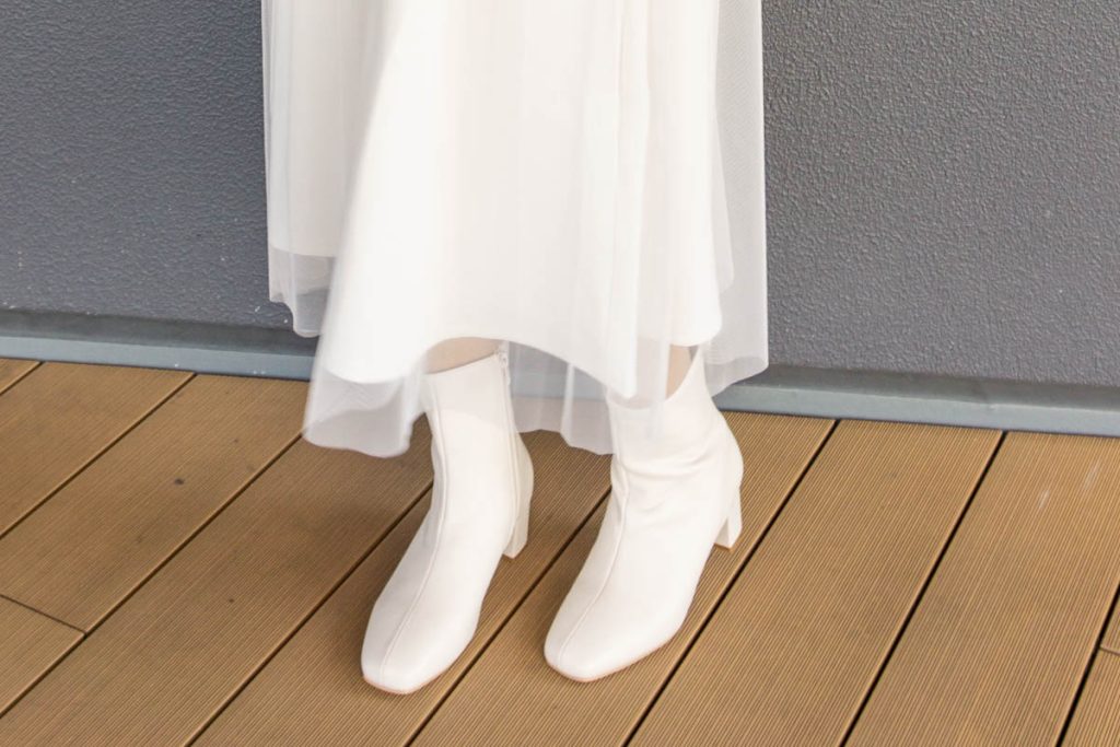 真っ白なブーツって上級者向けかなと思ってたけど、チェックシャツで一気にカジュアルな印象になるし意外と使いやすいかも!