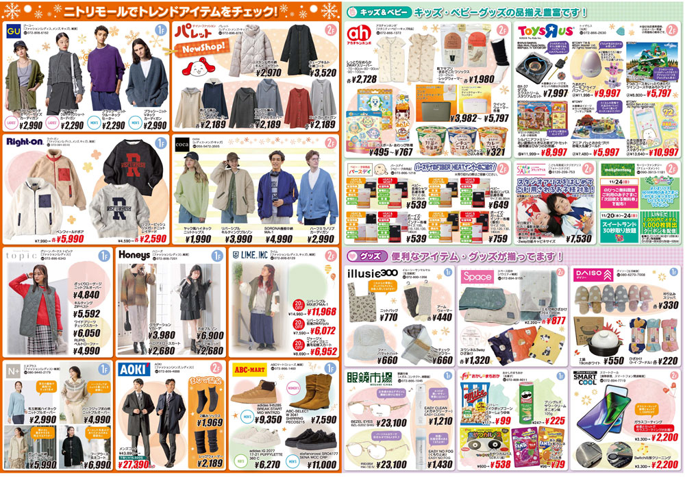 キッズ&ベビーのお店も豊富にあって、お洋服やお世話グッズも盛りだくさん!