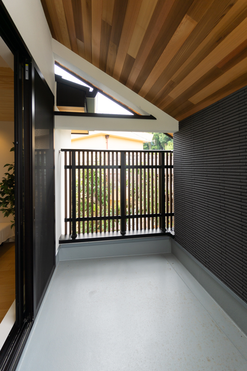 主寝室よこのバルコニーはしっかりと屋根があるので、雨の日でも気にせずに洗濯物を干せます。