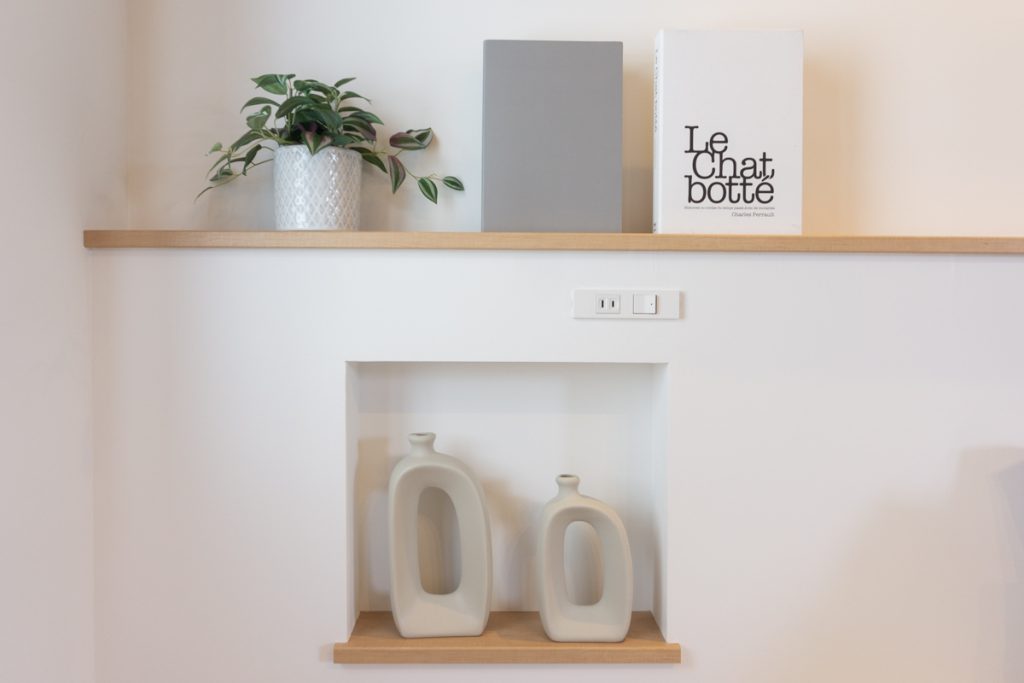 壁には棚とニッチが作り付け。
