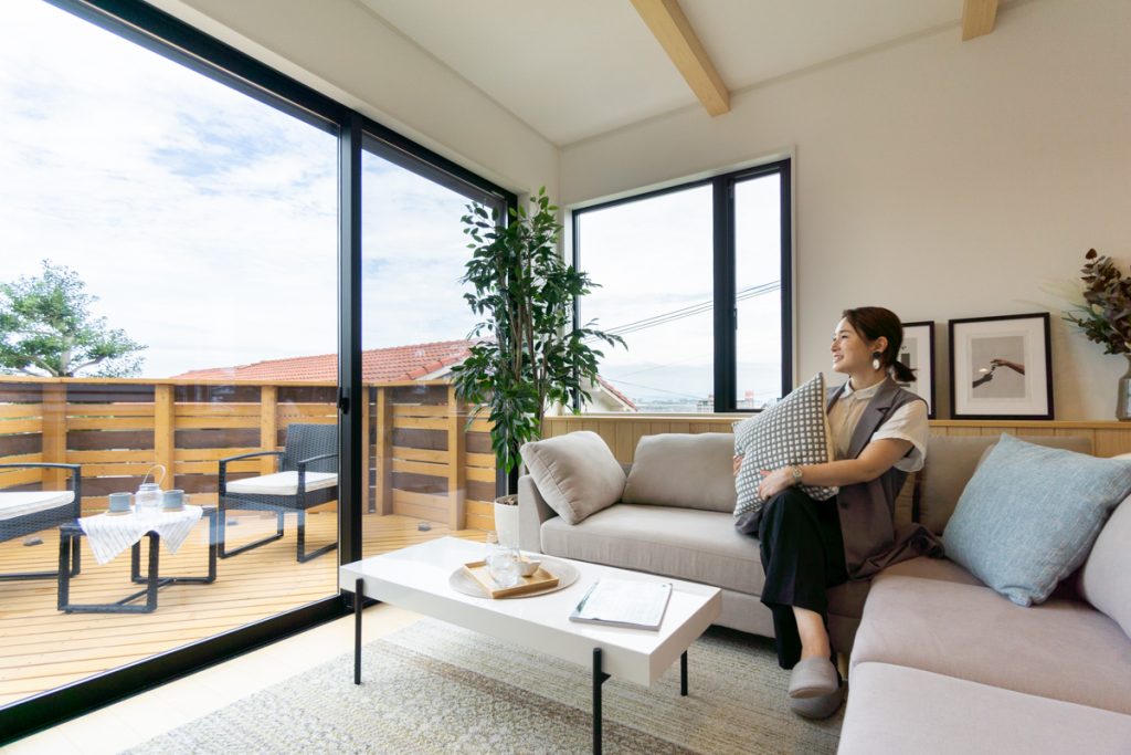 リビング横には眺望を独り占めできるウッドデッキ。