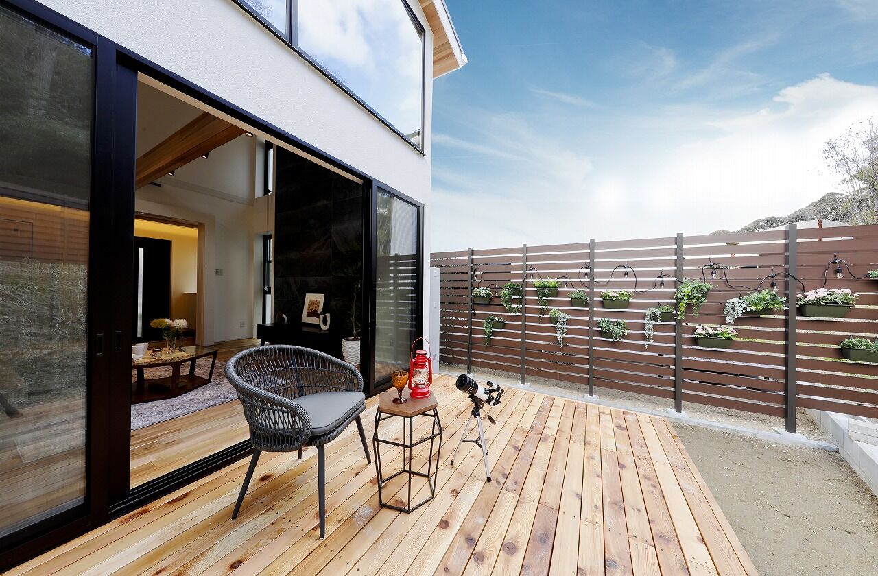 リビングとひとつづきになったウッドデッキをつくることも可能。