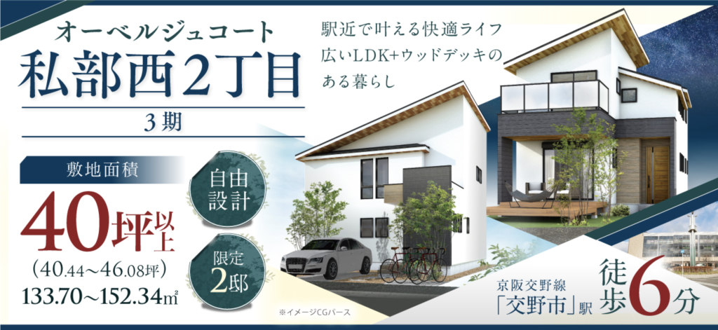 京阪交野線「交野市」駅 徒歩7分、駅チカなのに40坪超の広さを実現した、