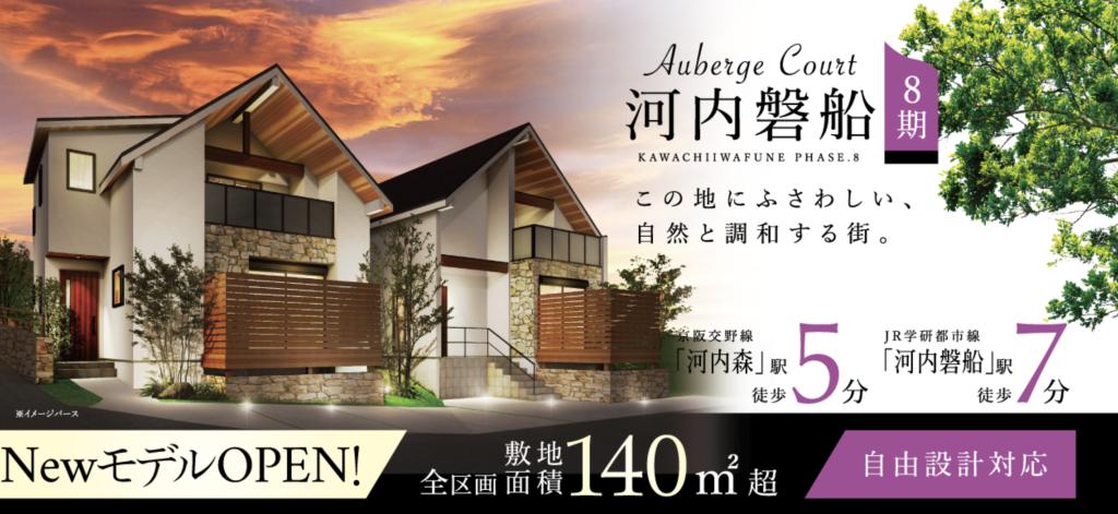 分譲地のスグそば、徒歩約2分の場所にはのちほど紹介するオーベルジュコート河内磐船8期もあります!