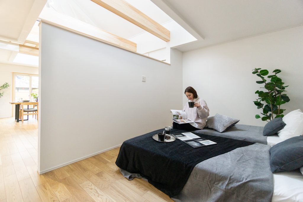 視線を遮りつつもLDKと繋がりを感じられる洋室。