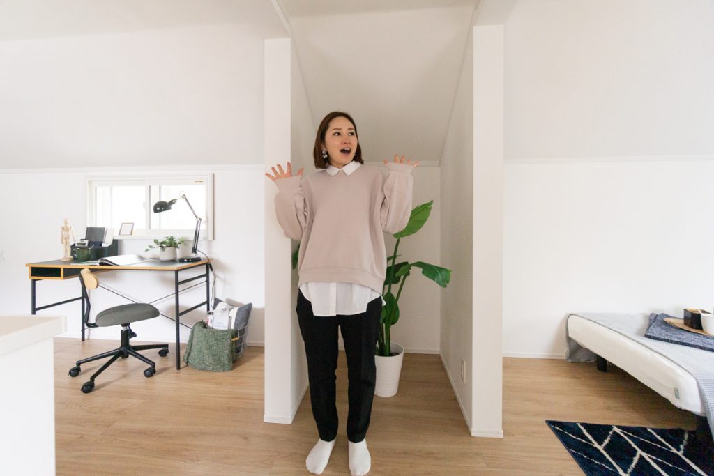 ロフト風の部屋になっていますが、天井の高さは背の高いパパでも平気な、居室と変わらない高さで快適。