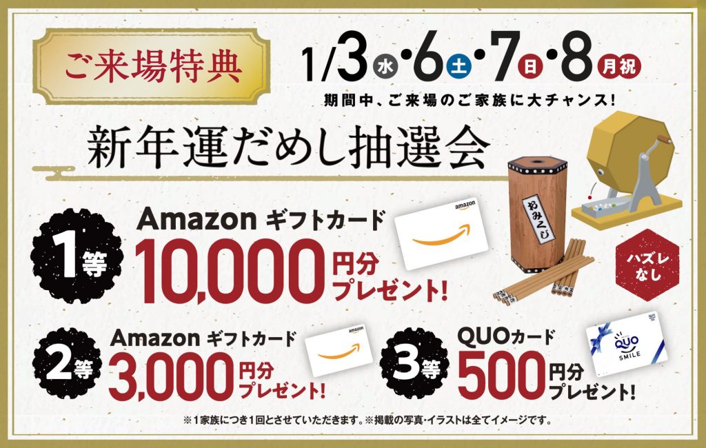 新年運試し抽選会で豪華賞品が当たリますよー!