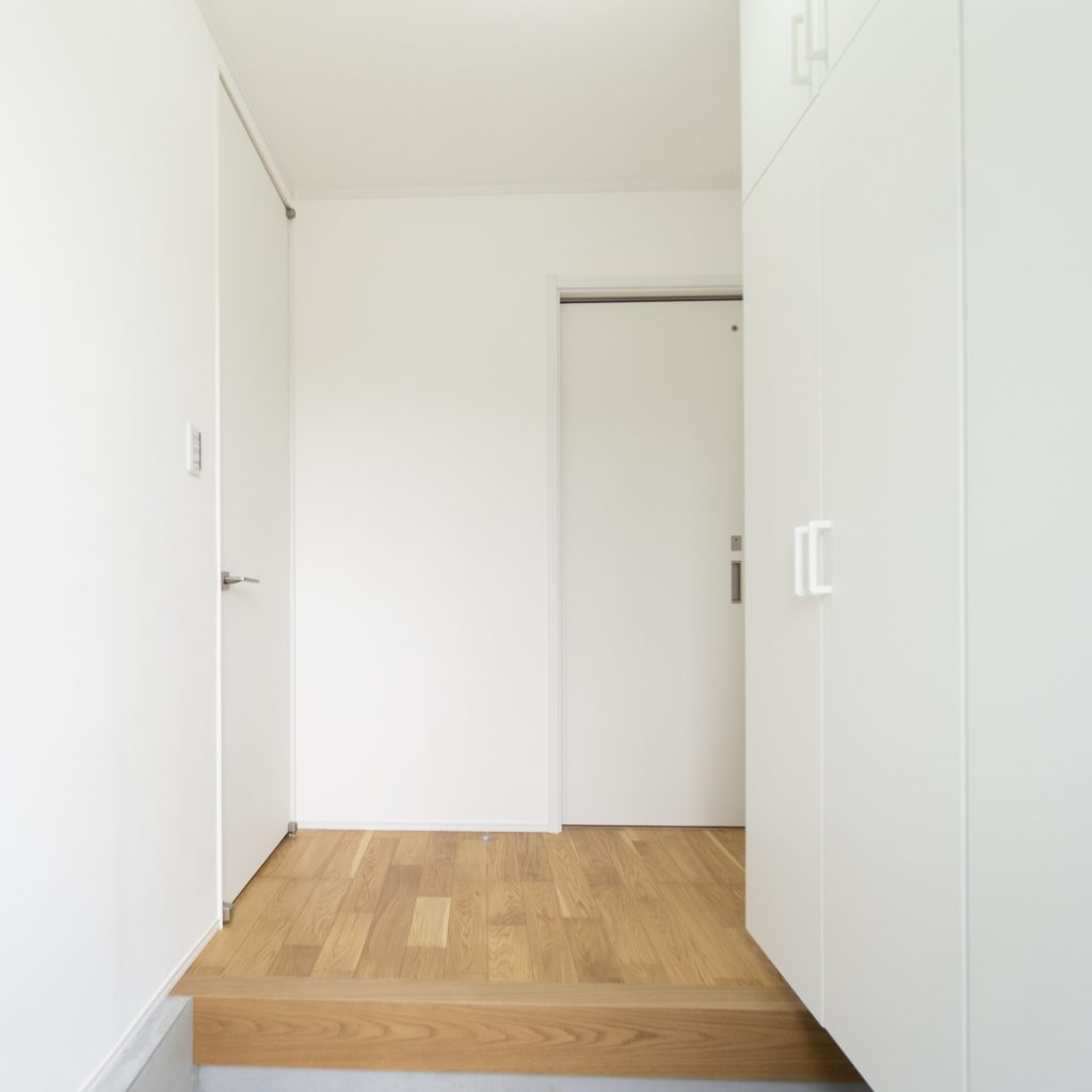 ドアを入ると、真っ白な玄関がお出迎え。