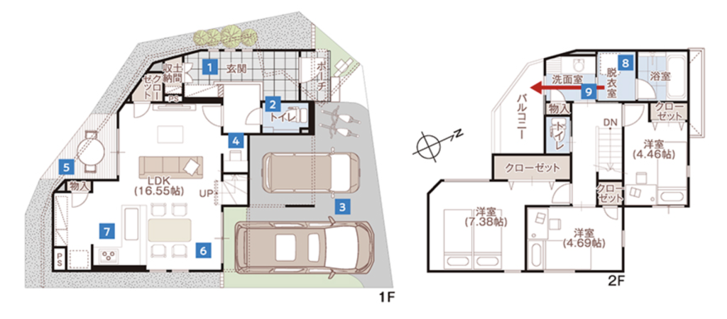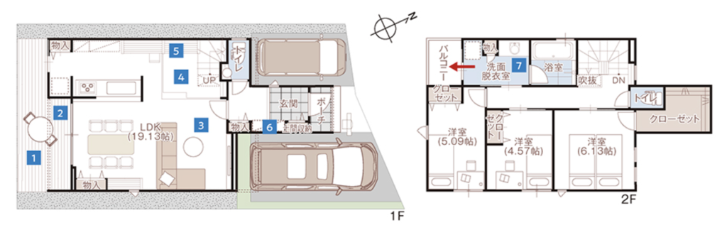 そして3邸とも車を2台停められる駐車スペースも完備されており、暮らしやすさもしっかりと考えられています。