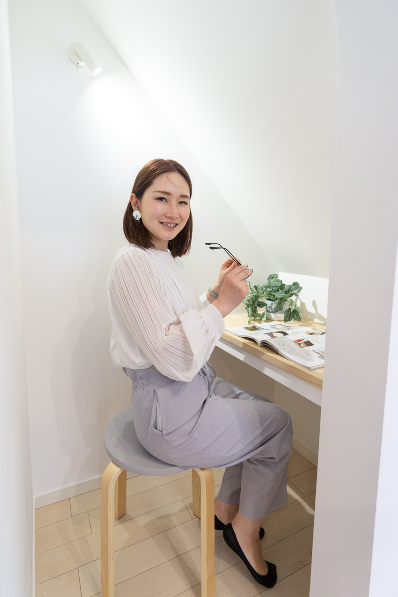 1階の真っ白な空間とは打って変わり、木の床に木張りの天井など、プライベートスペースはくつろげる空間になっています。