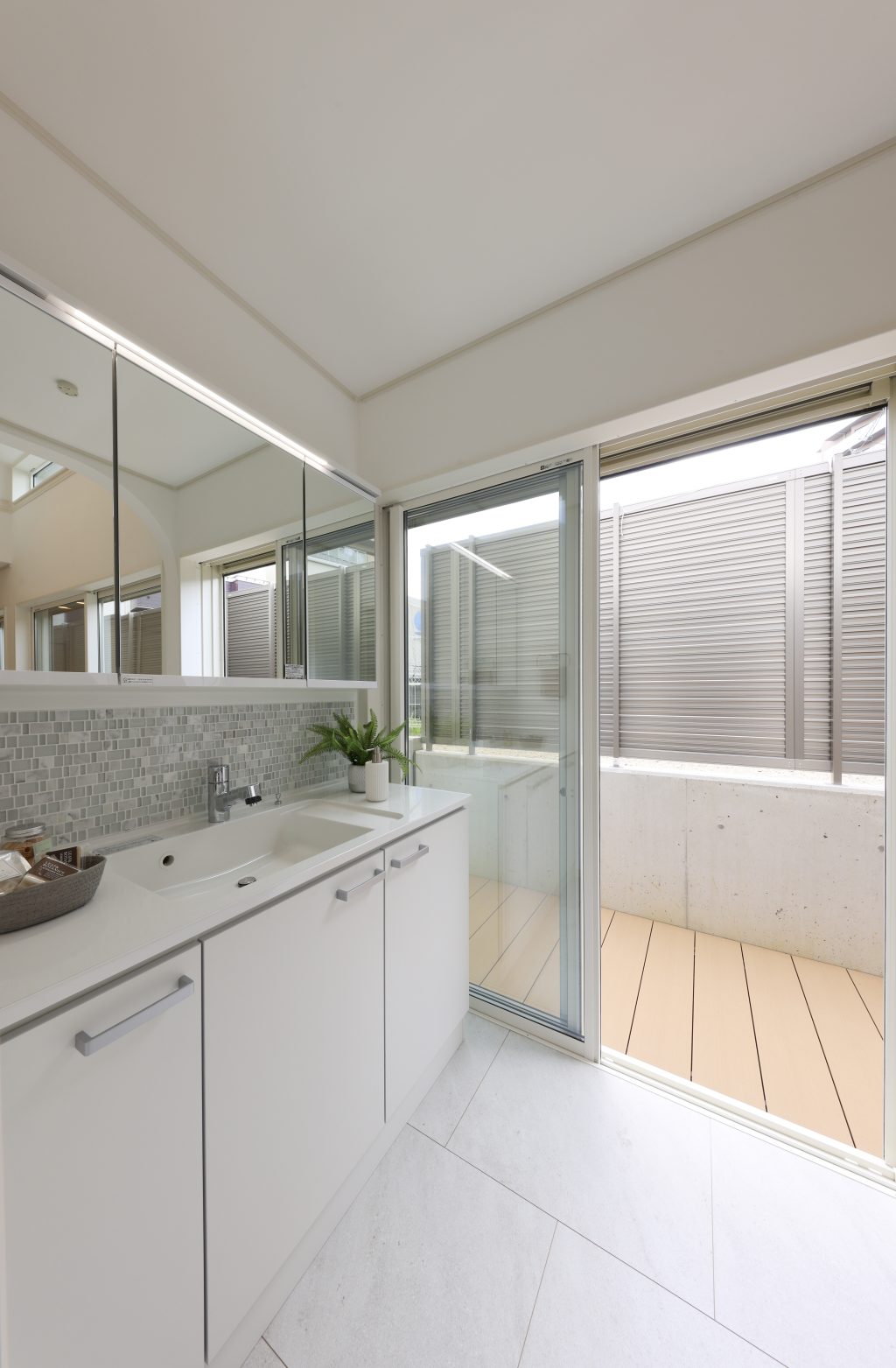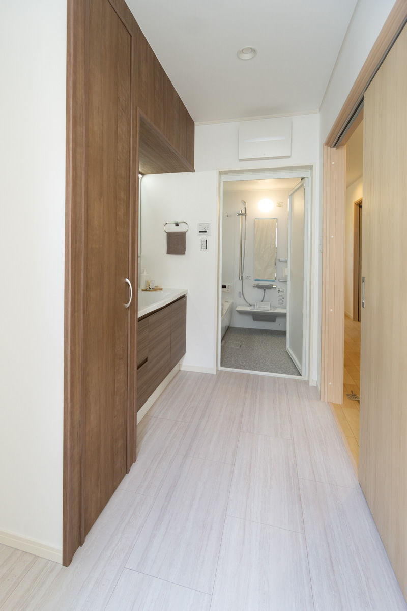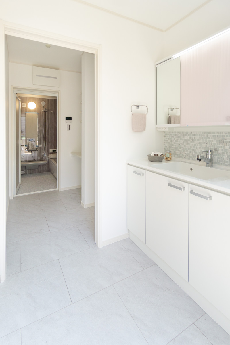 洗面・バスルームからはバルコニーへもそのまま出られるようになっており、家事動線もしっかりと考えられています。