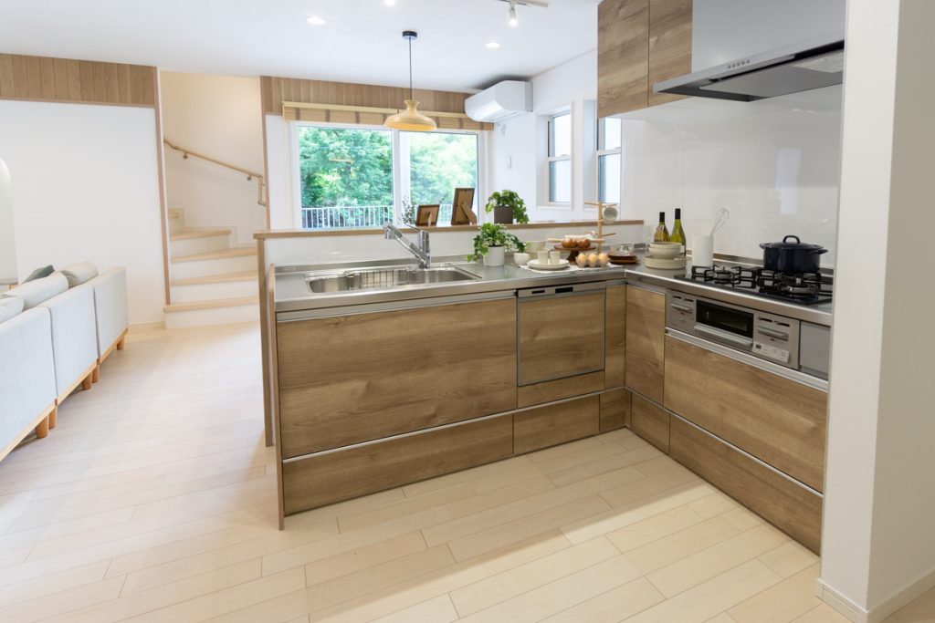 そしてキッチンはL字型で、広いスペースを確保。