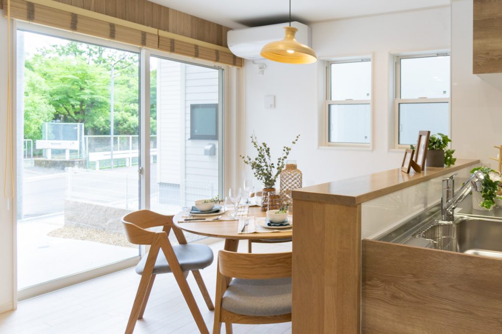 ダイニングにある大きな窓からは買い物してきた食材や荷物を、直接車から室内に搬入することもできます。