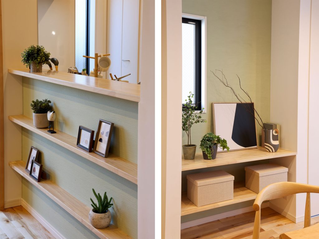 グリーンのカラーしっくいが可愛らしいですね!