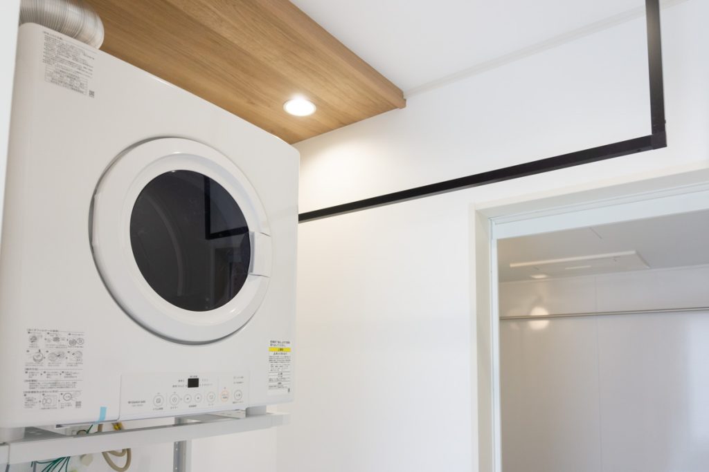 物干し用のバーも設置されているので、洗濯から乾燥まですべてここで済ますことができます。