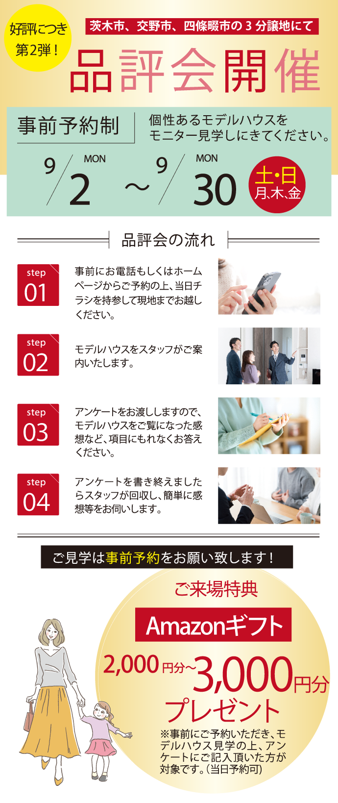 ※事前にご予約いただき、モデルハウス見学の上、アンケートにご記入頂いた方が対象です。(当日予約可)
