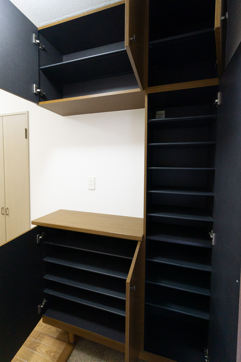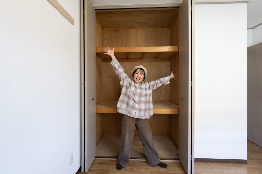 幅も広いし奥行きもあるし、これだけしっかり収納があればバッチリやわ。