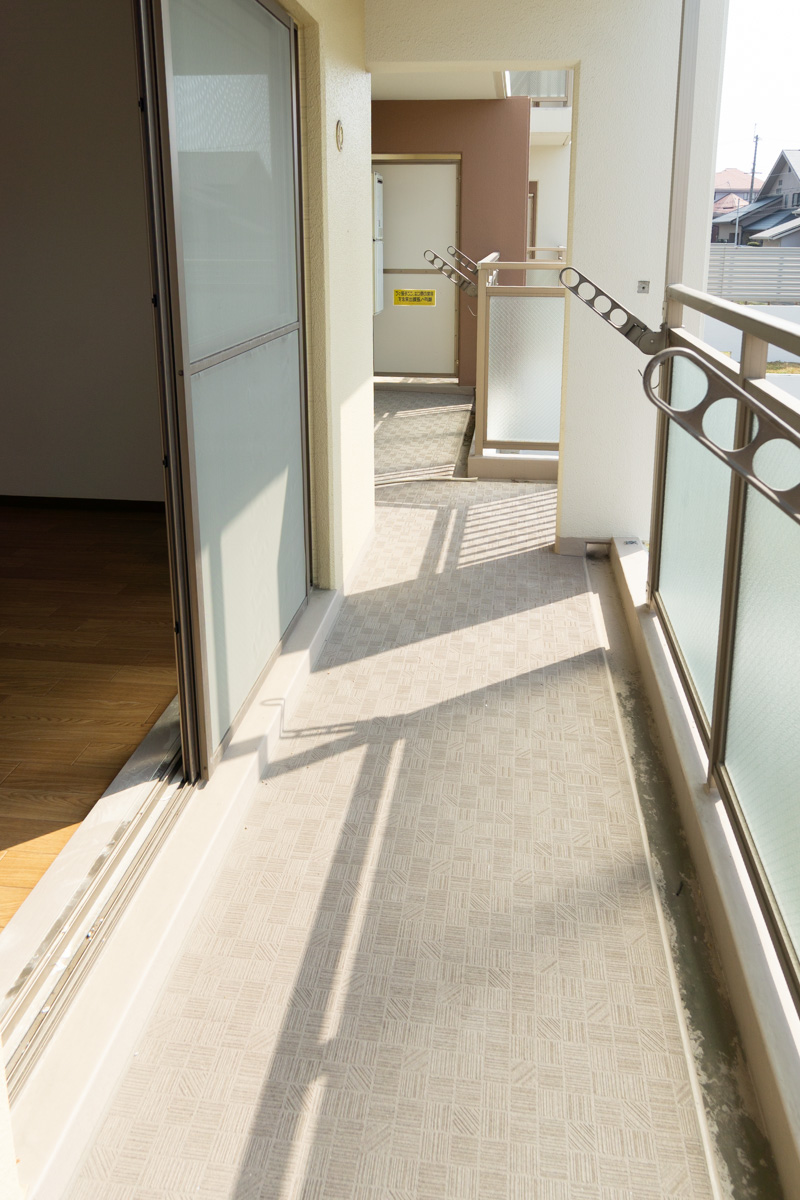 リビングからも和室からも出られるし、これだけ幅広いと洗濯物干しながら布団干したりも余裕やな!