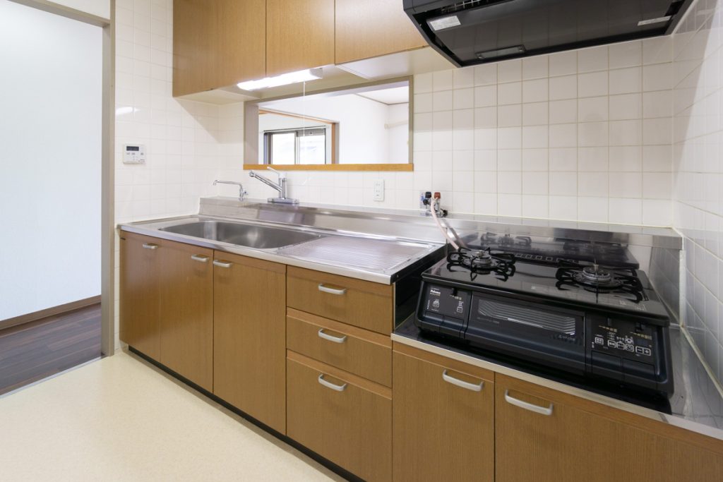 カウンターの下にはガス栓が備え付けなので、お鍋やタコ焼き、ガスファンヒーターなんかも使用できます。
