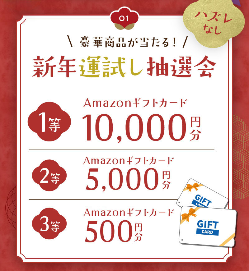 ハズレなしで、なんと1等はAmazonギフトカード10,000円分!