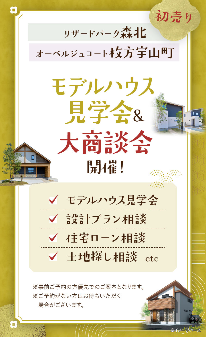 新春マイホームフェスタが開催されるリザードパーク森北とオーベルジュコート枚方宇山町。