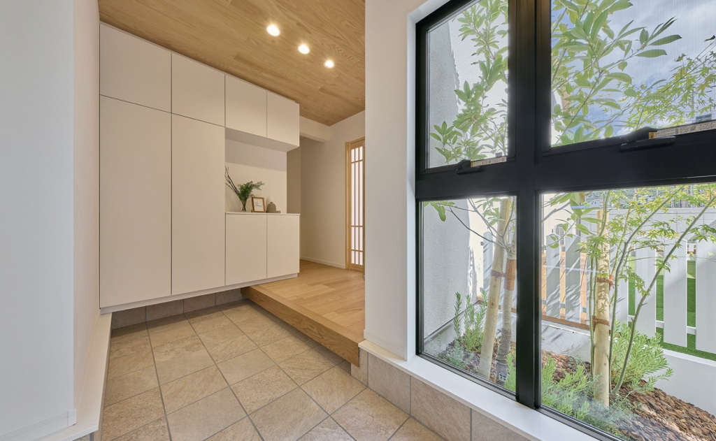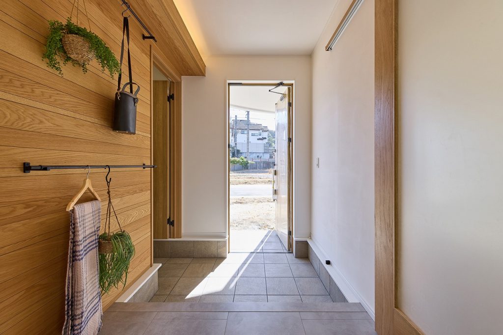 玄関を入ると、ナチュラルな木張りが温かみを感じる空間がお出迎え。