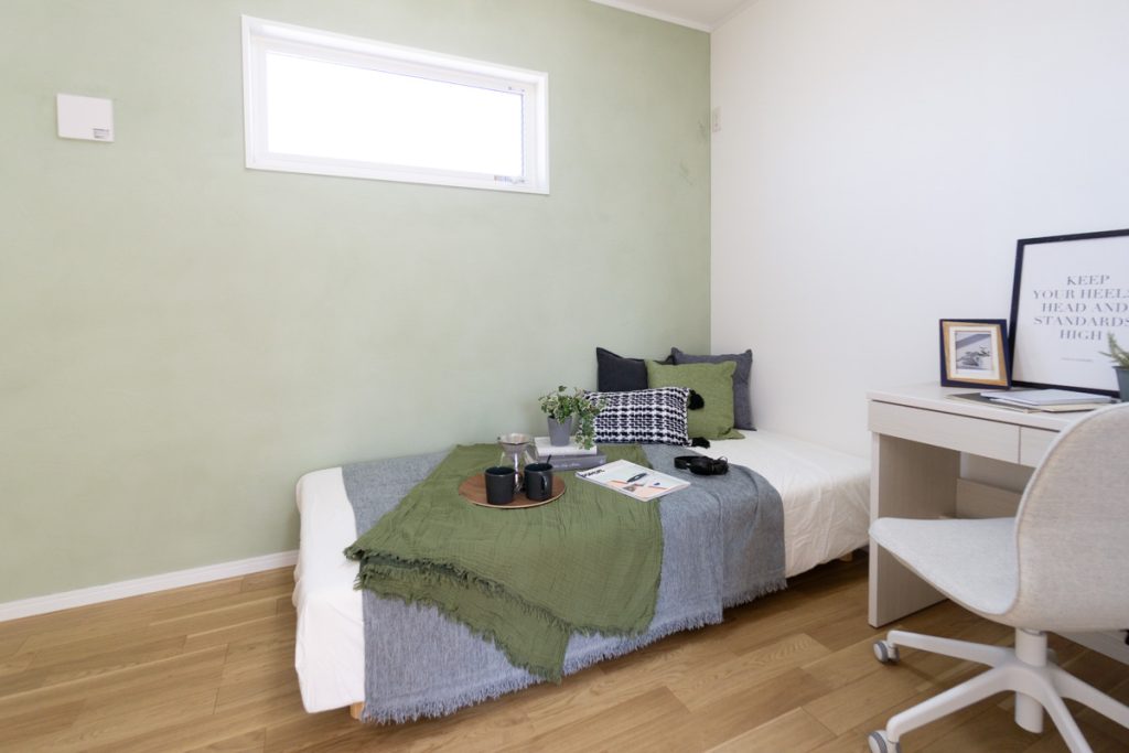 漆喰は色の変更も可能で、カラー漆喰の壁はアクセントになってお部屋がグッと引き締まりますよ!