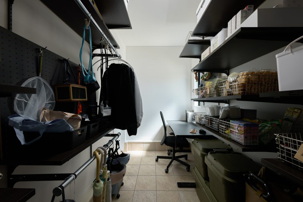 広い土間収納は家族みんなの靴はもちろん、ベビーカーやアウトドア用品も十分入る広さがあります。