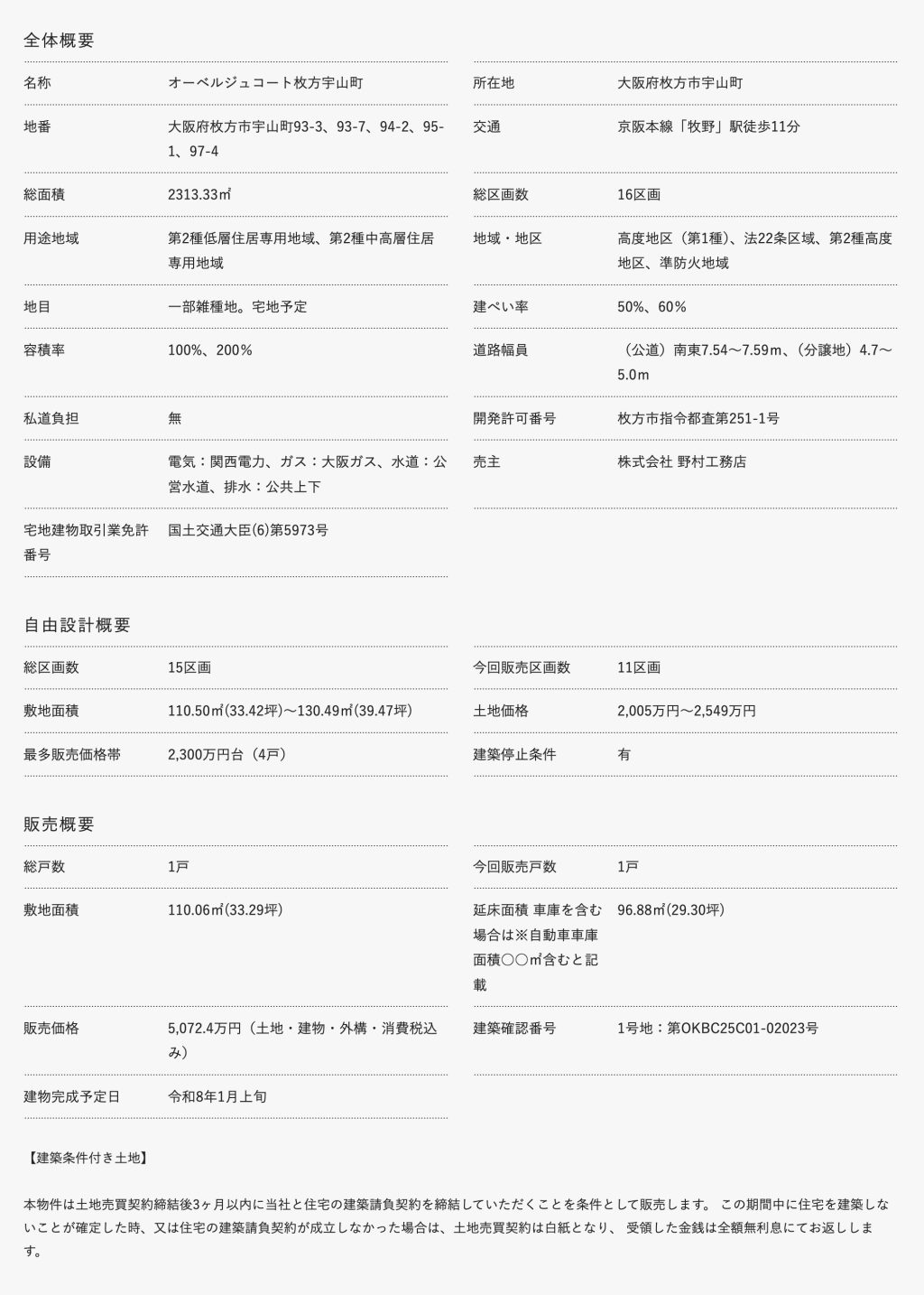 もうひとつのオーベルジュコート枚方宇山町の分譲地はどんな感じなんやろ??