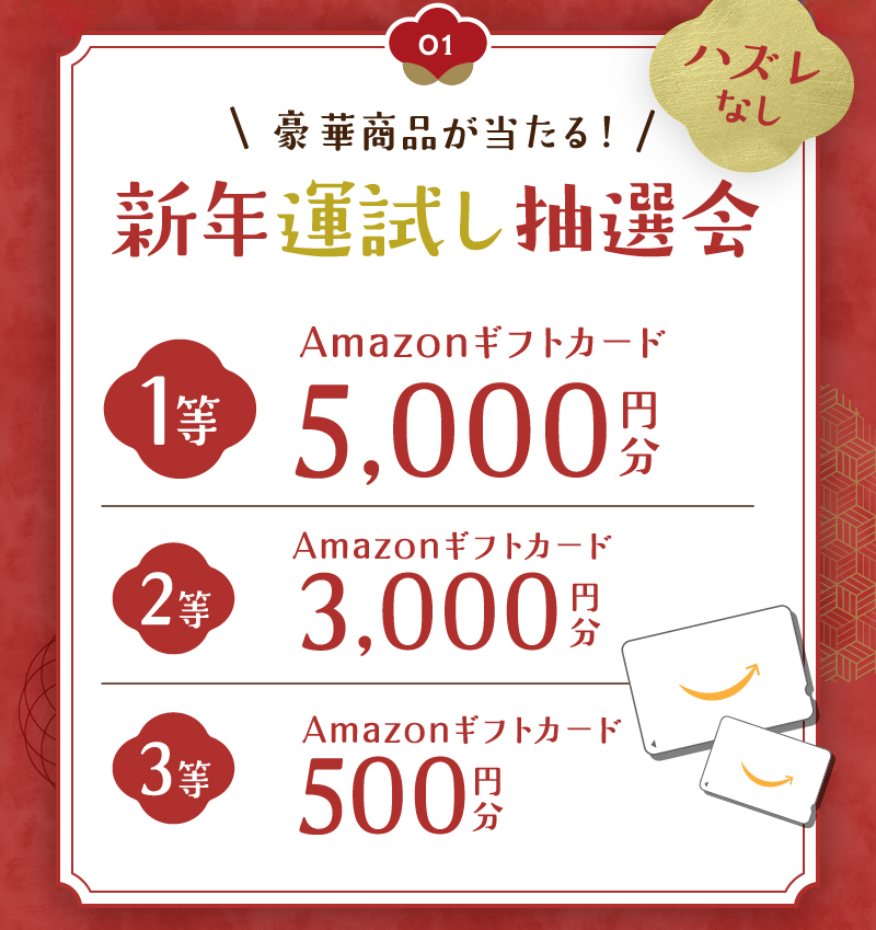 ハズレなしで、なんと1等はAmazonギフトカード5,000円分!