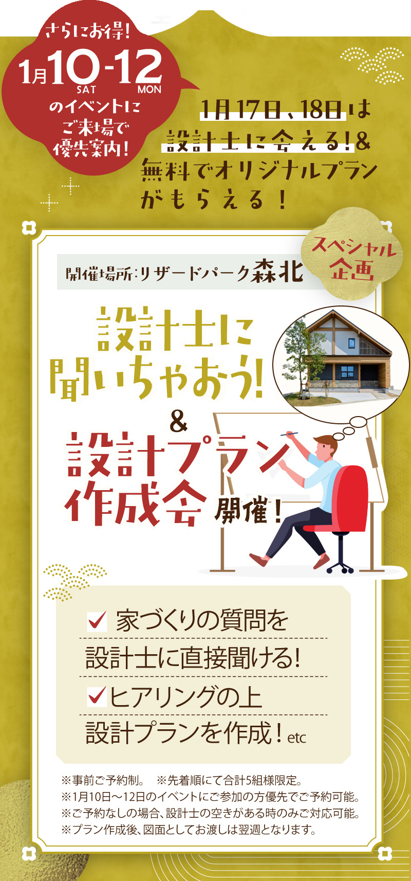 設計士に聞いちゃおう!&設計プラン作成会に優先案内!!