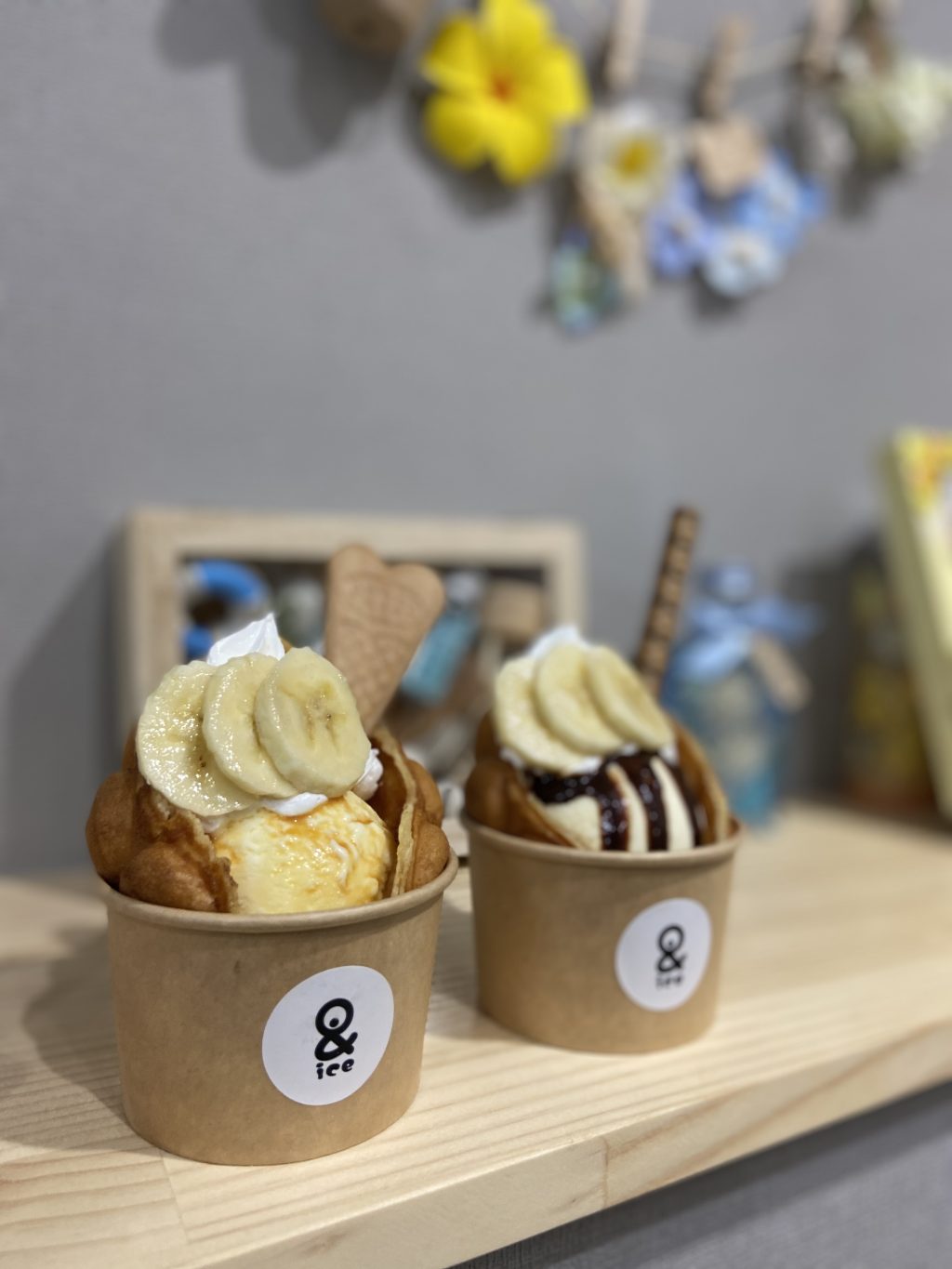 大阪でも数少ない、泡のような形をした香港発祥のバブルワッフルを、アイスと一緒にぜひお召し上がりください。(一部店内飲食も可能で、涼しい店内で食べることができます。)