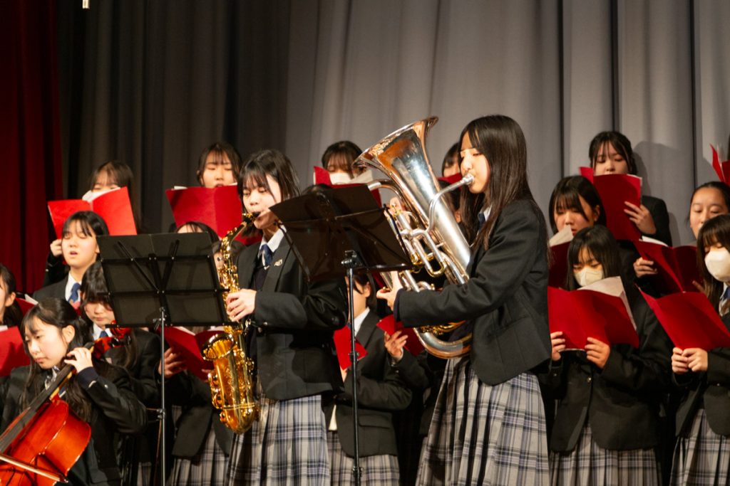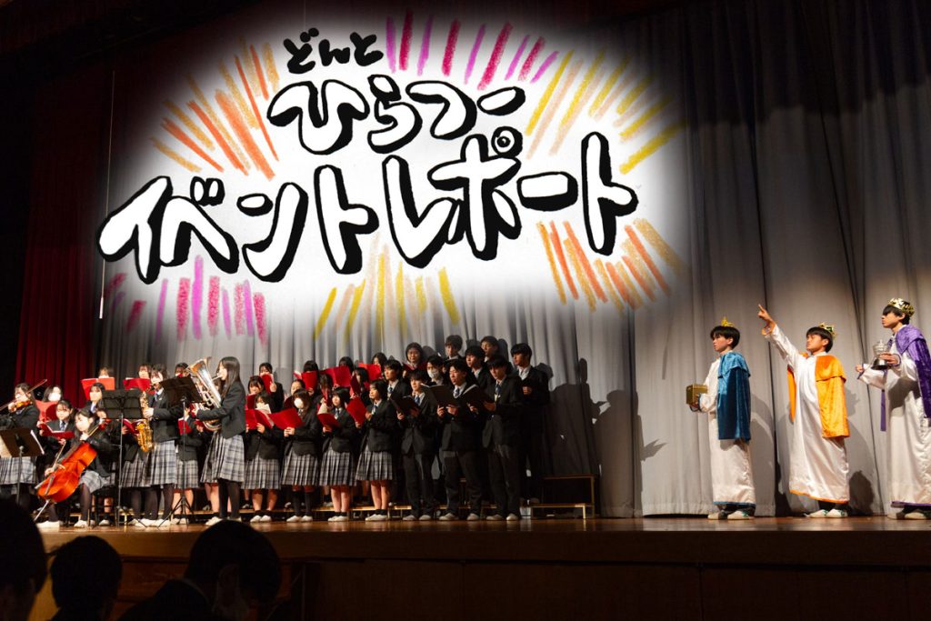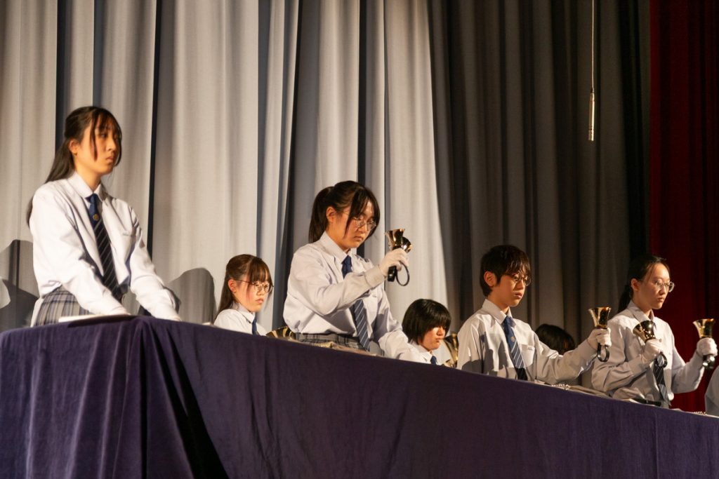 そこに物語のナレーション、合唱部や音楽選択生による歌声、吹奏楽部やハンドベル部による演奏が重なります。