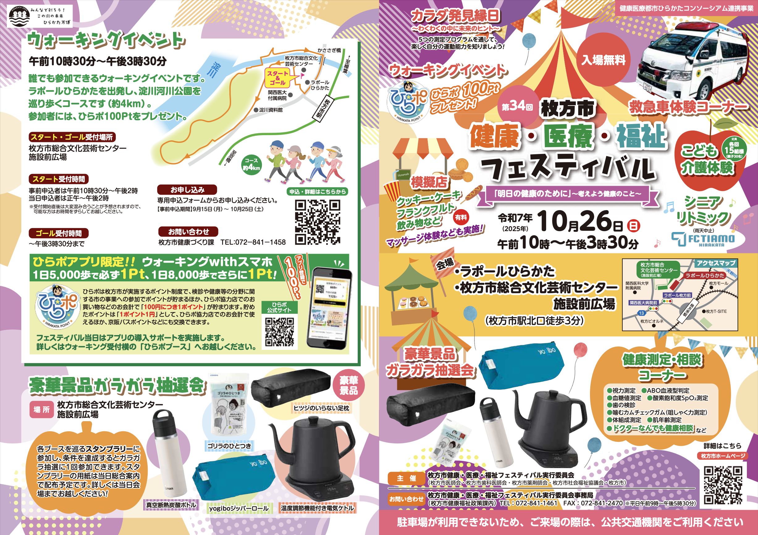 ラポールひらかたと総合文化芸術センター前広場で、「第34回 枚方市健康・医療・福祉フェスティバル」が開催されます。
