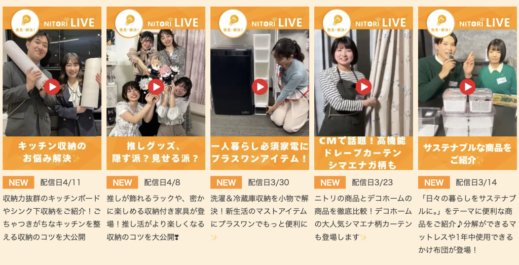 インスタから見るのもいいですが、オススメはNITORI LIVEでの視聴!