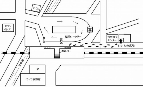 ※電車でお越しの方は京阪牧野駅改札を出たら2番出口の階段を上ってください♪