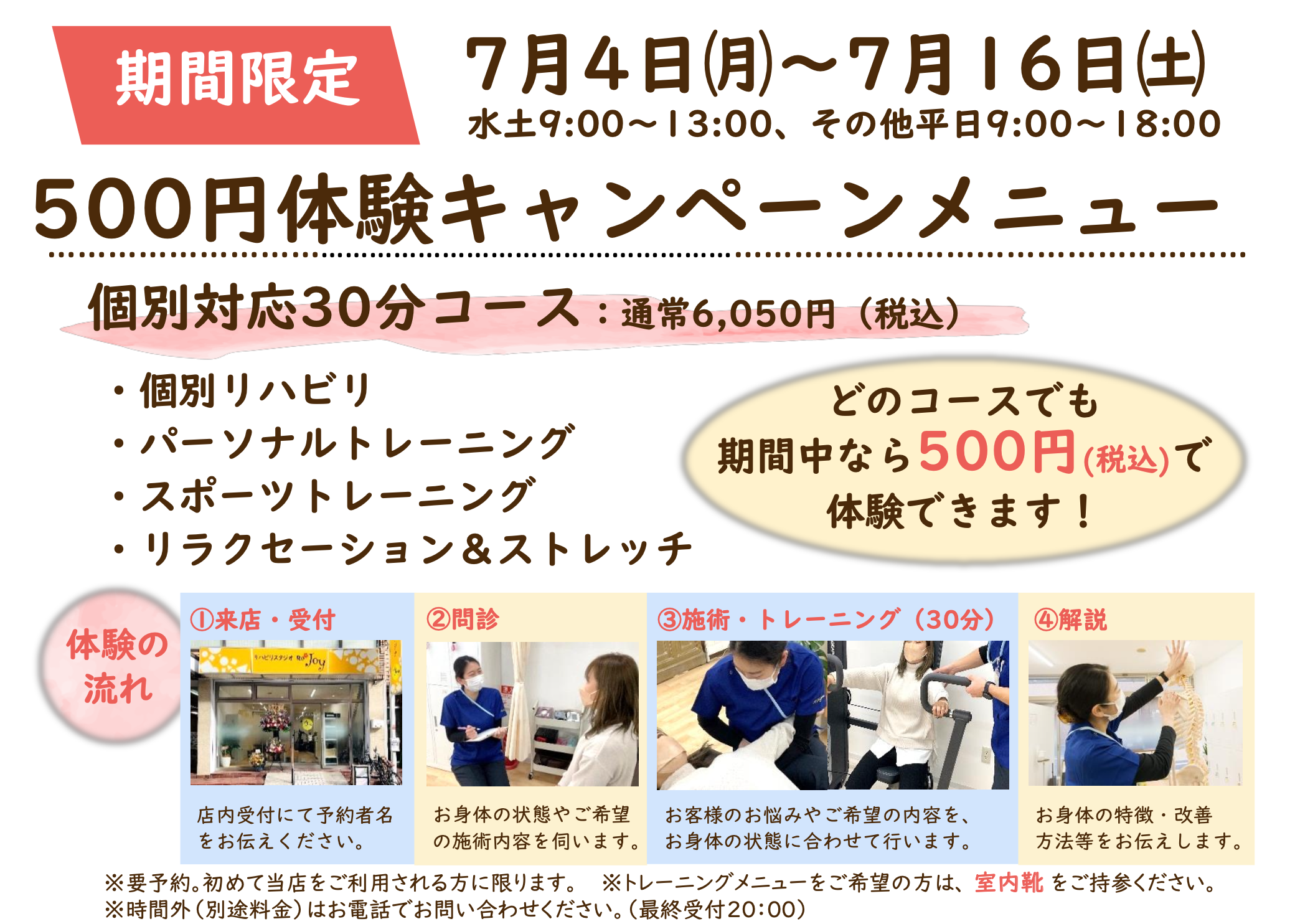 Rejoyの施術・トレーニングが500円で試せるチャンス!