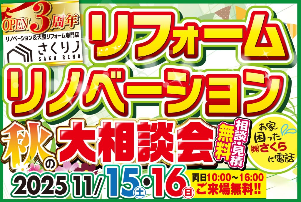 11/15(土)16(日)はリフォーム&リノベーション秋の大相談会!