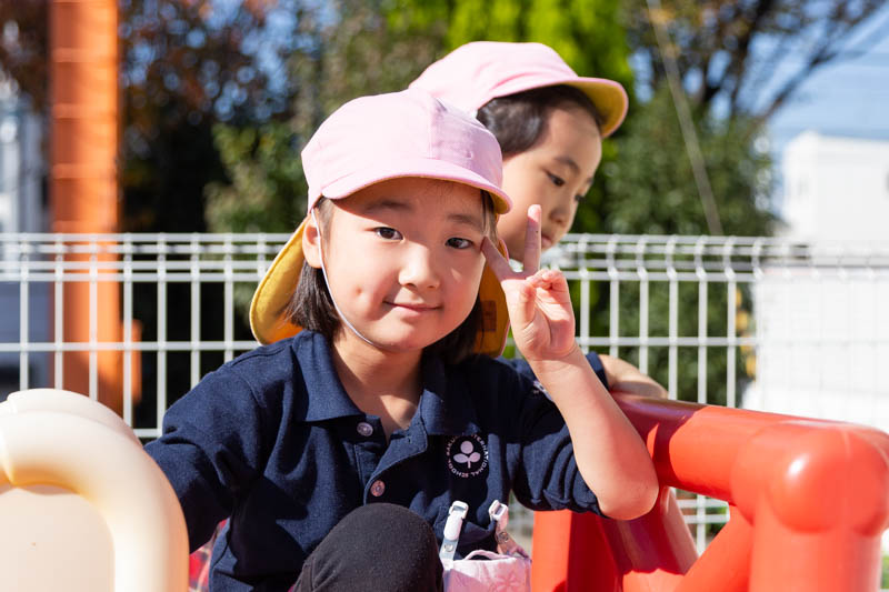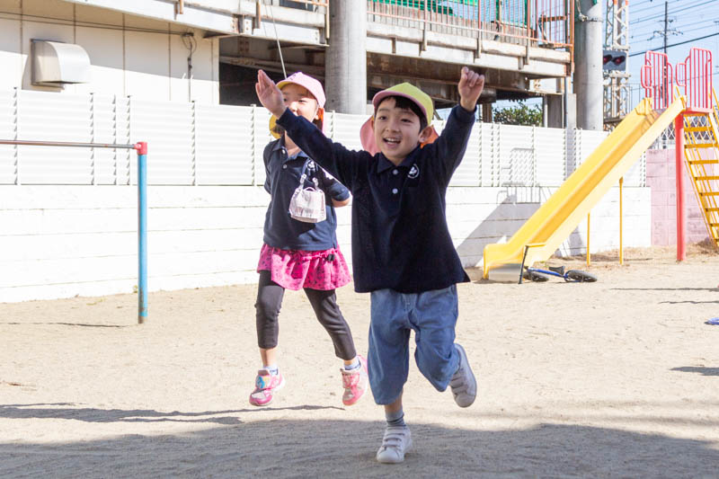 この時間にはK2クラスとK3クラスが園庭に出て遊んでいました。